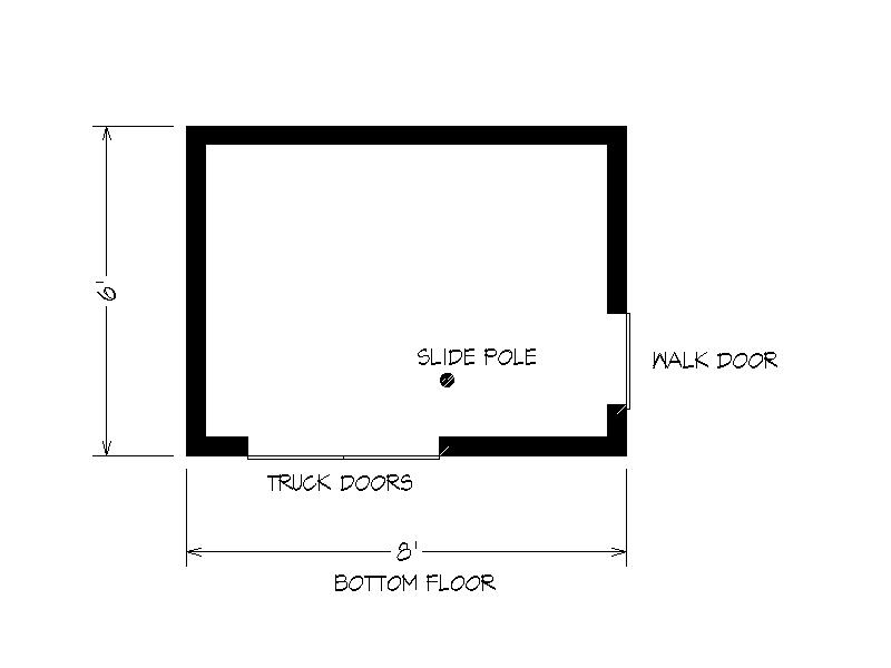 This 2 Story Firehouse is a boys dream come true. Inside future firefighters can slide down a fire pole from the upstairs loft. This playhouse features large barn-style "truck" doors and a side door. Clapboard-style siding, crisp white Colonial trim and a shiny brass firebell accent the exterior. Exterior dimensions: 10 feet high, 8 feet wide and 6 feet deep.